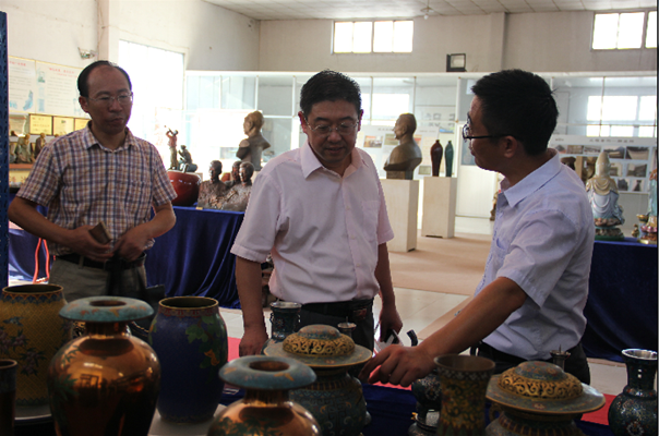 崔國(guó)發(fā)副書記與教授、博士一行深入車間一線認(rèn)真了解銅工藝生產(chǎn)工藝,隨后在產(chǎn)品展示廳與公司負(fù)責(zé)人就公司發(fā)展和校企合作開展情況進(jìn)行了交流。