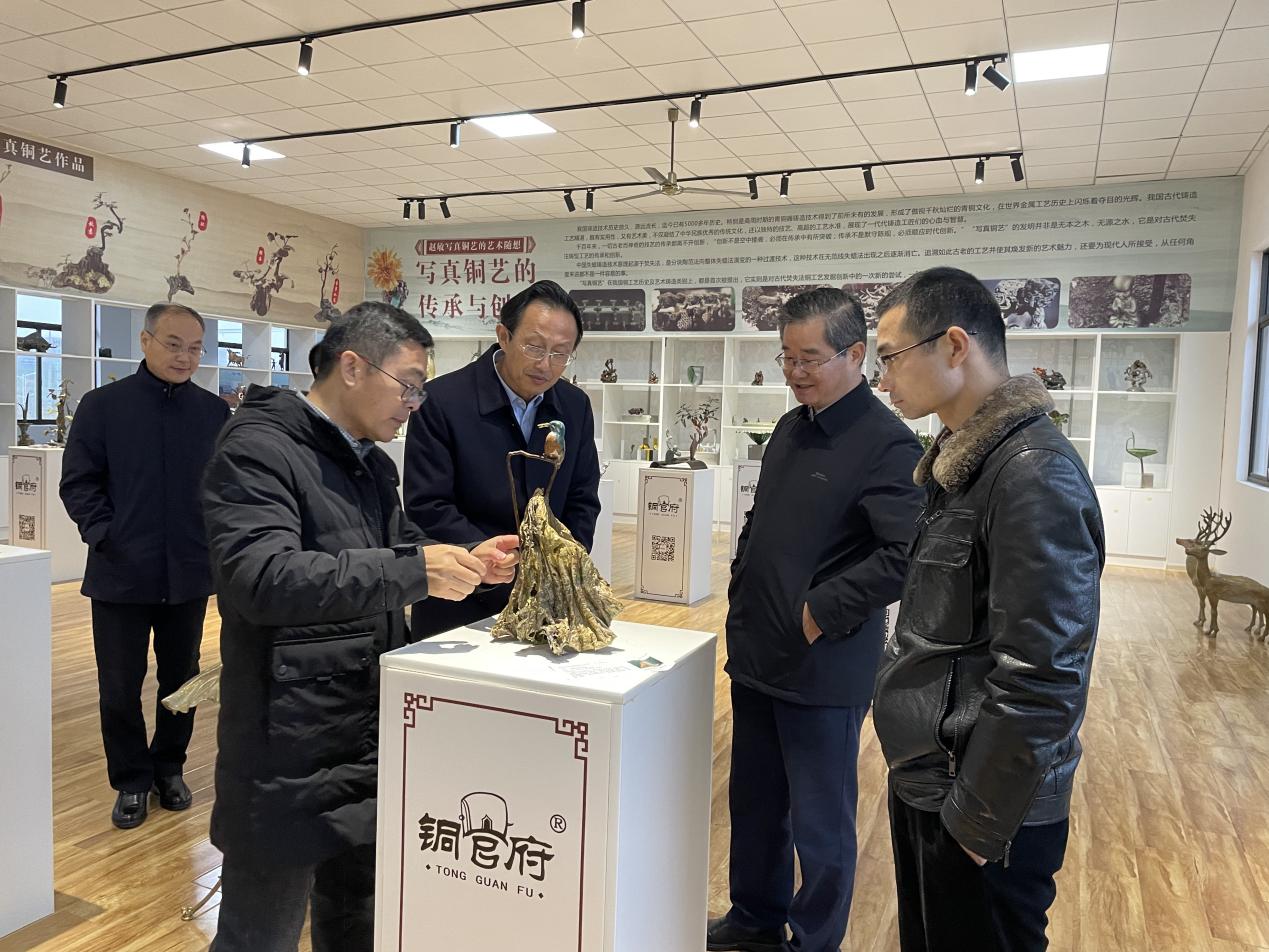 12月12日,黃岡市人大常委會(huì)黨組副書(shū)記、副主任詹旺民率隊(duì)來(lái)我公司考察,市人大常委會(huì)黨組副書(shū)記、副主任汪宜武陪同。公司負(fù)責(zé)人郭飛向大家詳細(xì)介紹了公司文旅融合發(fā)展、銅文化資源挖掘、銅文化建設(shè)等工作情況。詹旺民副主任充分肯定了銅官府在壯大銅文化產(chǎn)業(yè)方面所做的工作和取得的成效,并希望進(jìn)一步加強(qiáng)兩地文化的互動(dòng)交流、互學(xué)互鑒,共同促進(jìn)經(jīng)濟(jì)社會(huì)發(fā)展。